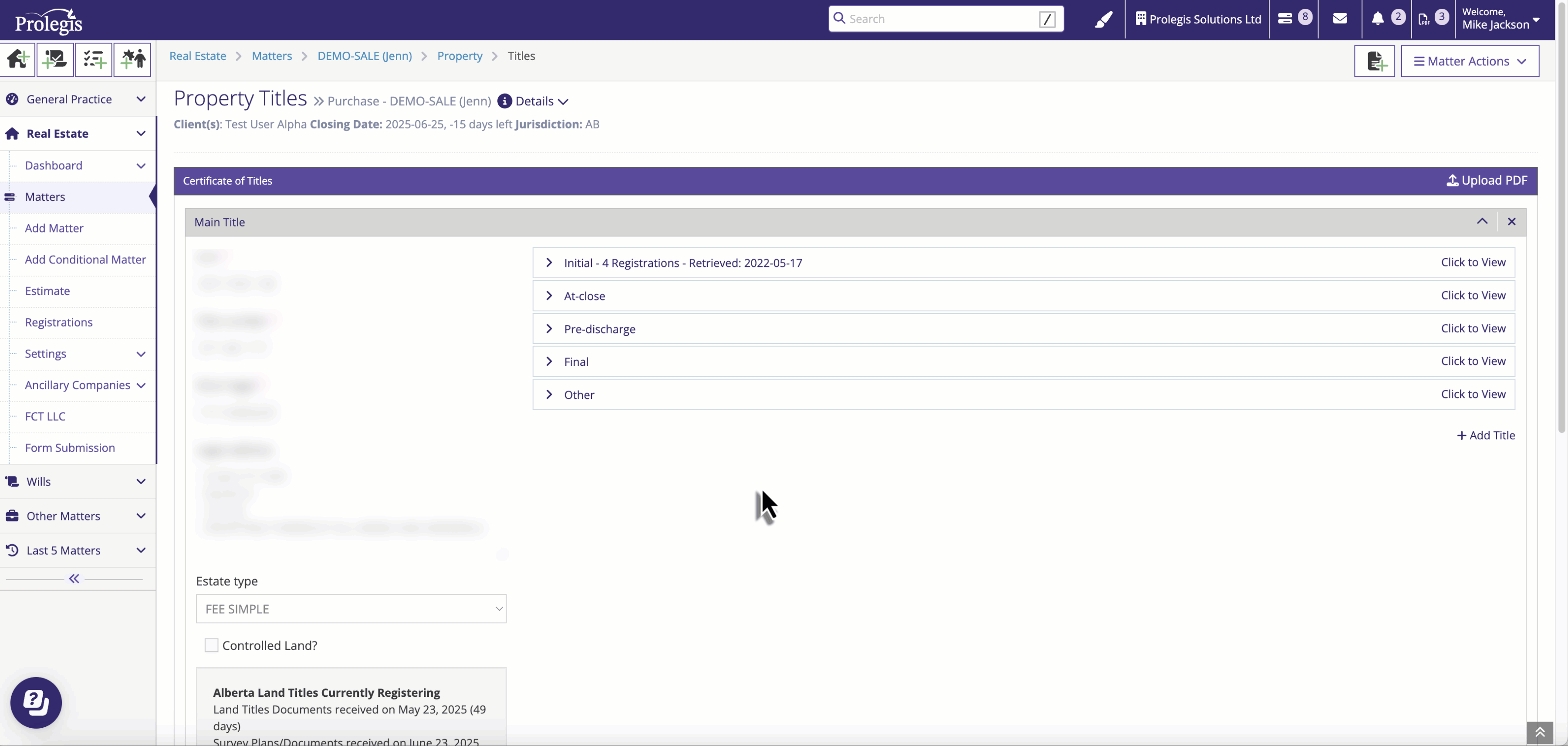 To search for pending DRRs on SPIN II, navigate to the Titles action in your matter. For this feature to function, you will either need to have uploaded a title to the matter or you will need to enter the LINC number for the property. You’ll also enter your SPIN II user name and password to access the pending DRR queue.