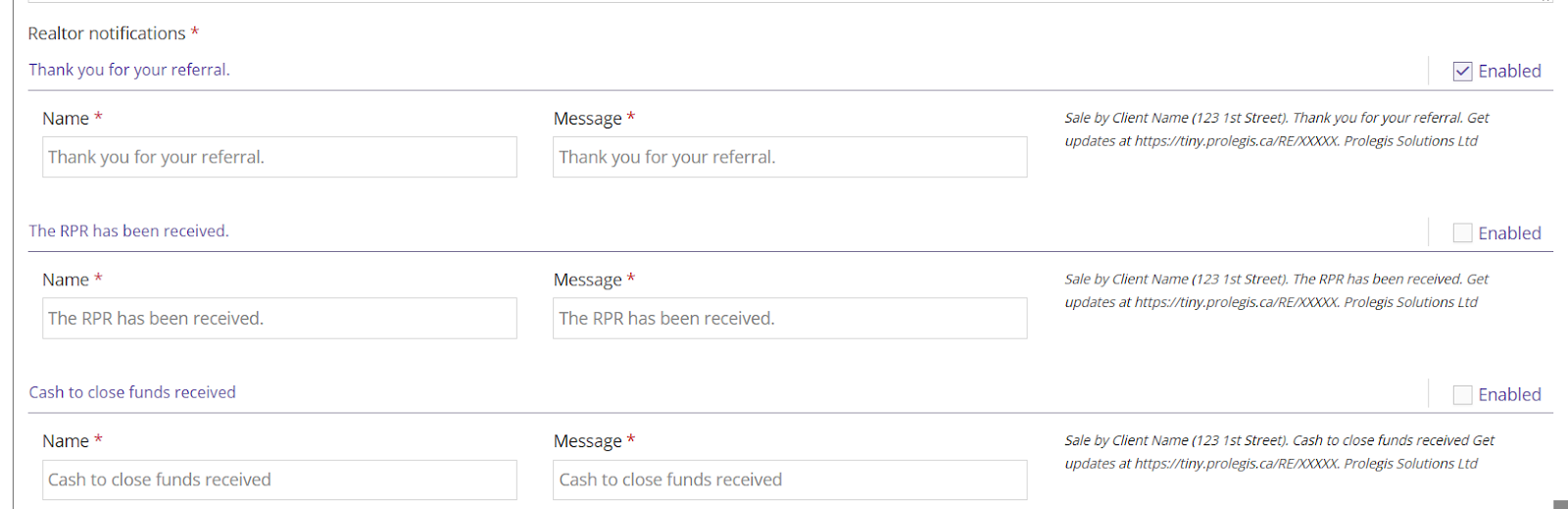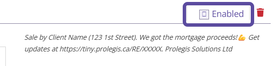 - Click “Enable” on the message you want the realtors to receive when marking the corresponding step on your checklist as complete.