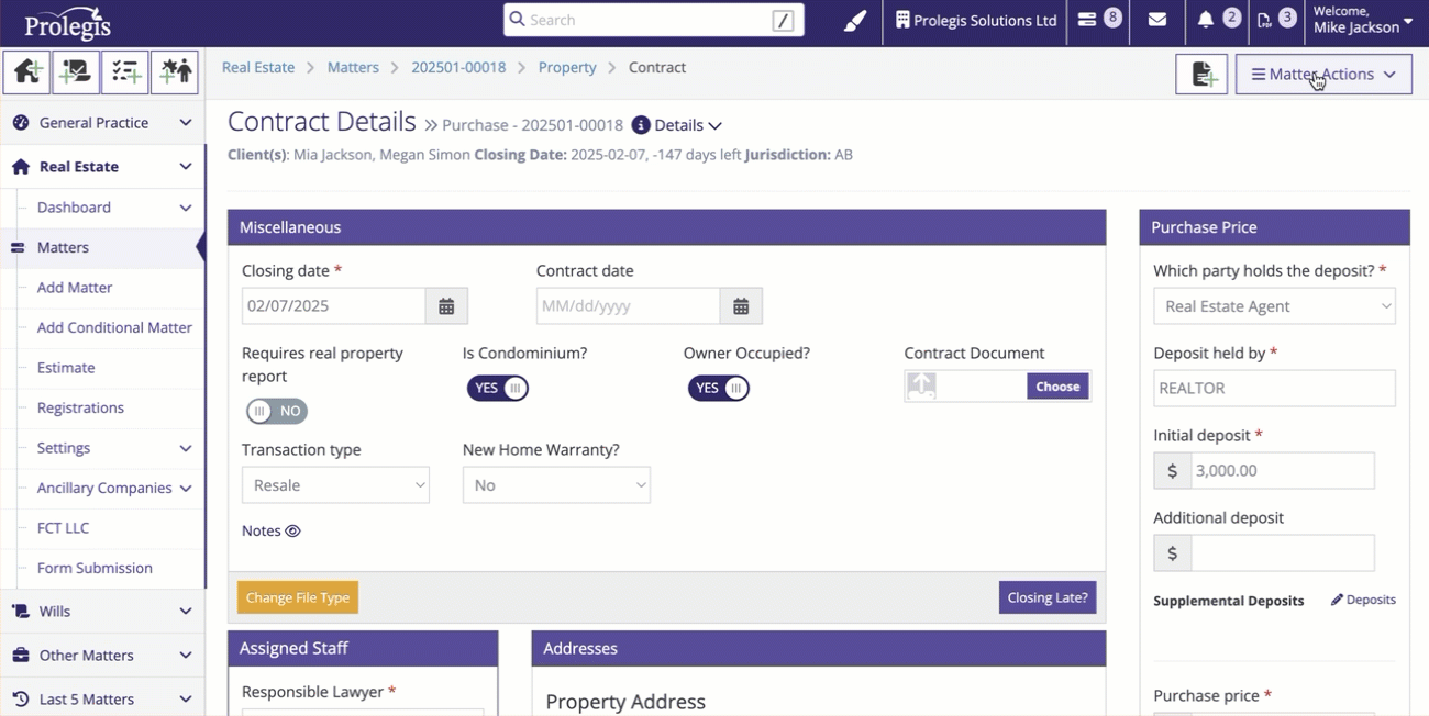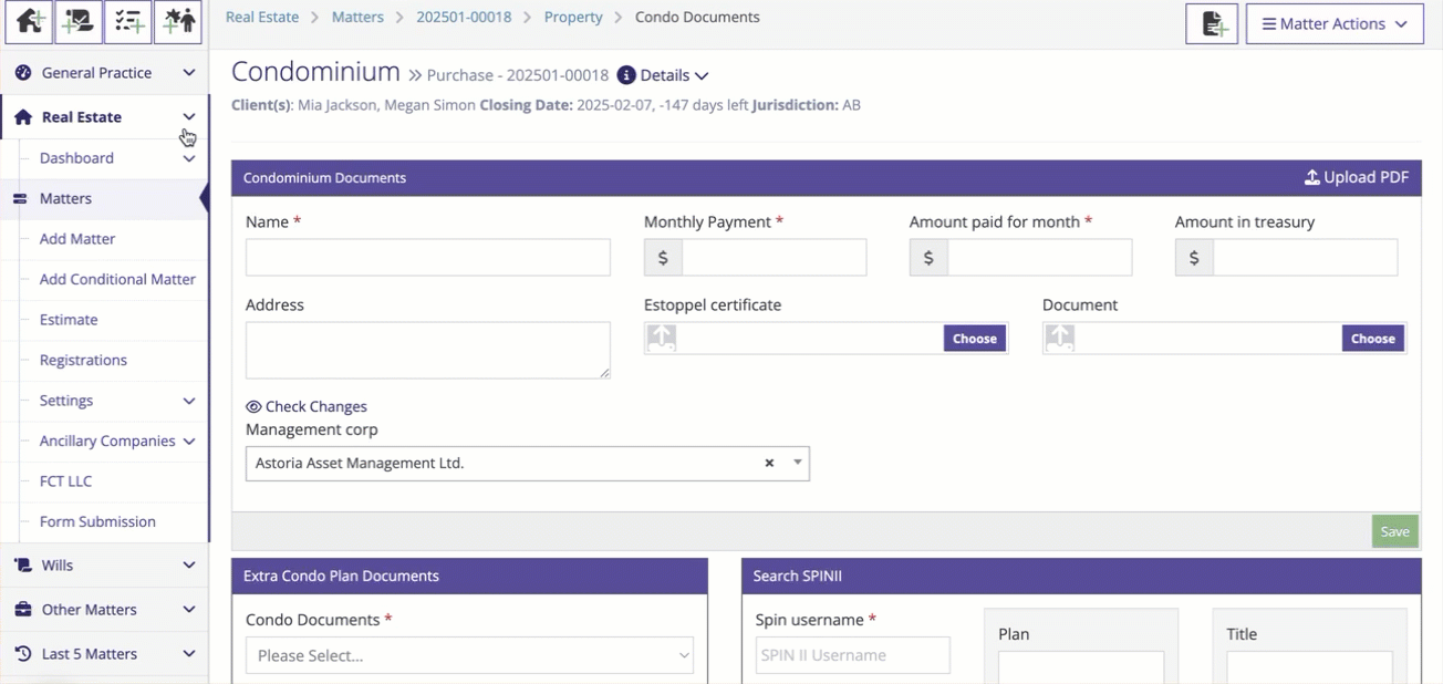 To add a condo management company, go to the Condo Documents Action (your matter will need to be marked as being a condo file in the Contract Action)