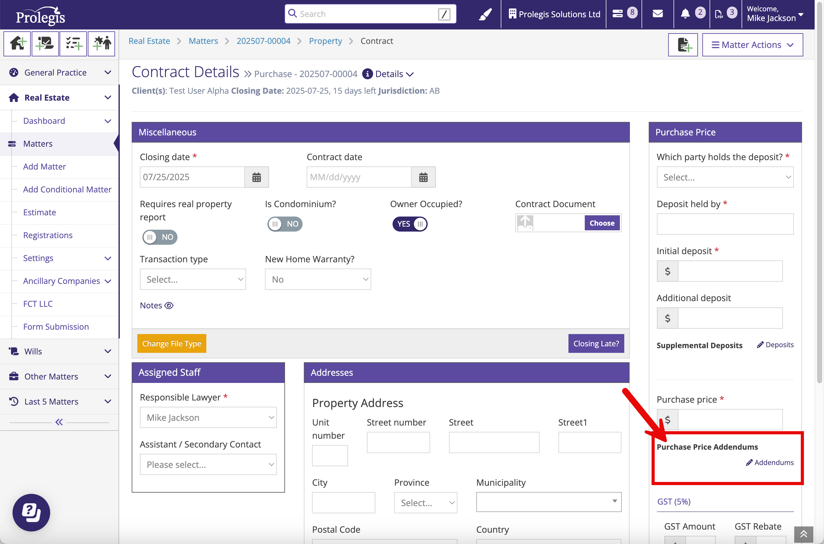 As you add addendums and GST, clicking Save will update the Totals for Purchase Price and GST.