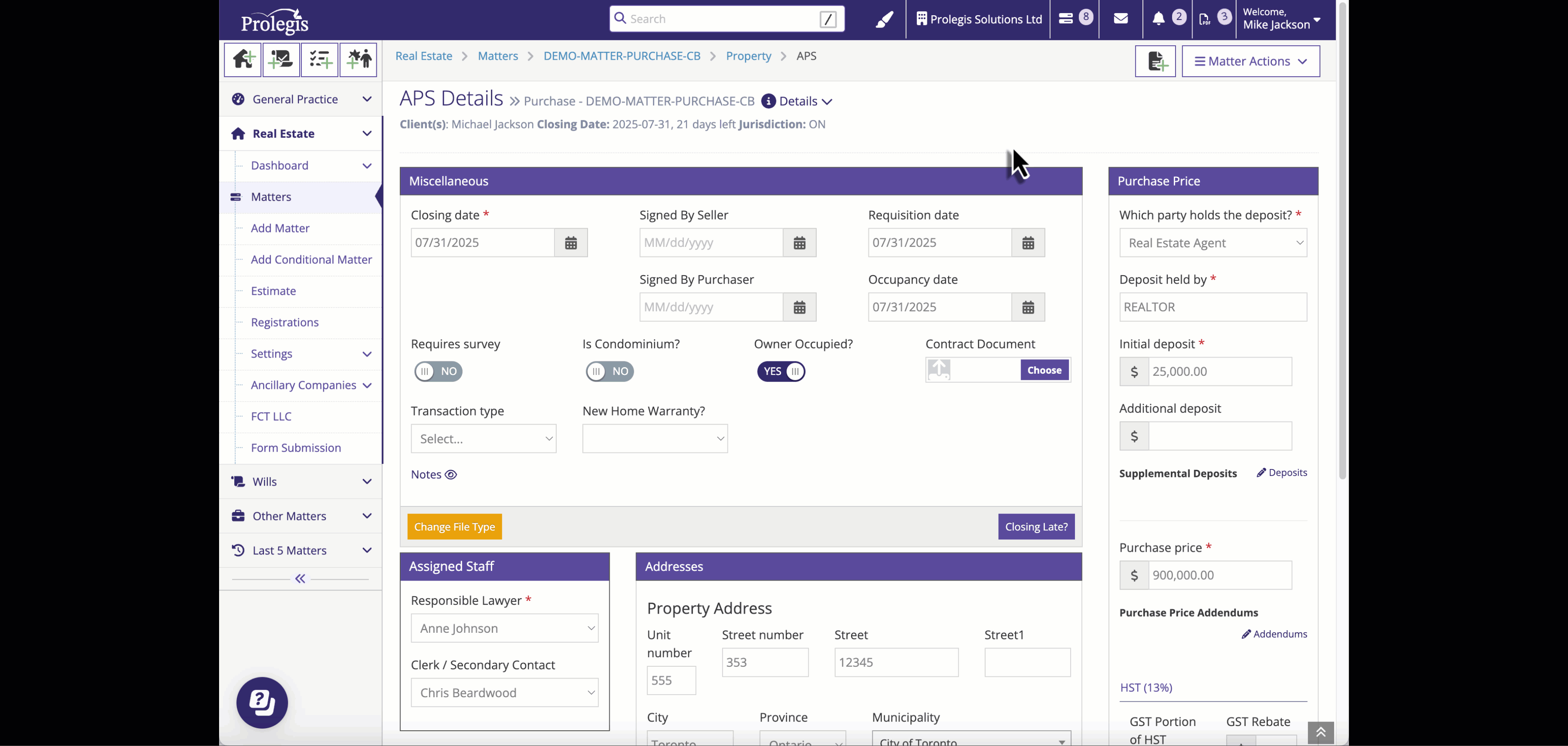 To add a template requisition to the matter, click “Please select” and click on the desired template requisition. When saved, the requisition will automatically be added to the requisition letter when generated.