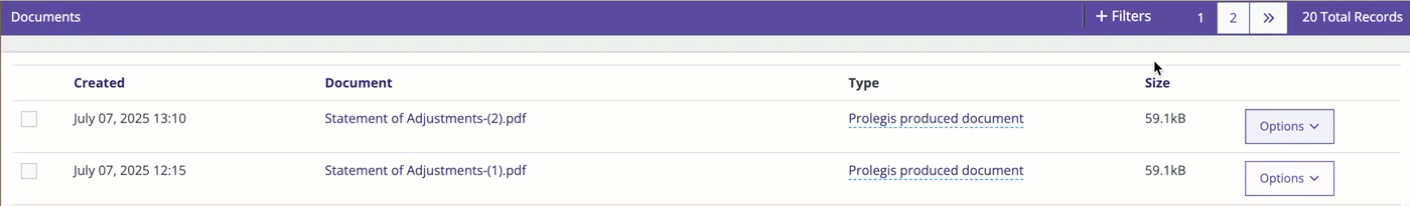 To modify a created PDF, go to the Documents action, click Options then Modify.