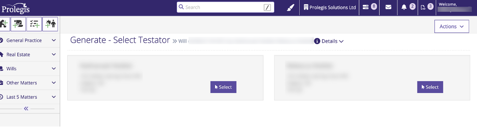 Once the data entry is complete, when you creating documents, you will be asked which of the two testators the document will be created for. Select the relevant testator and create the document.