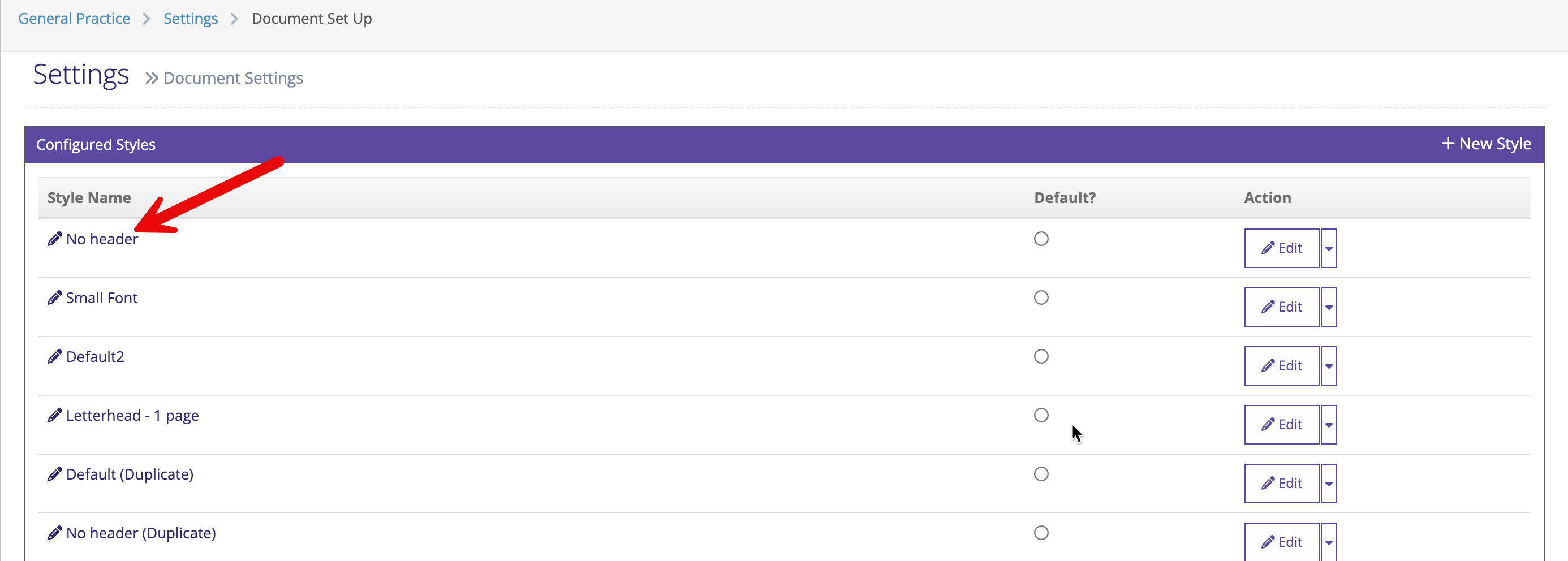 To adjust the placement of your header, navigate to the Style as indicated above.