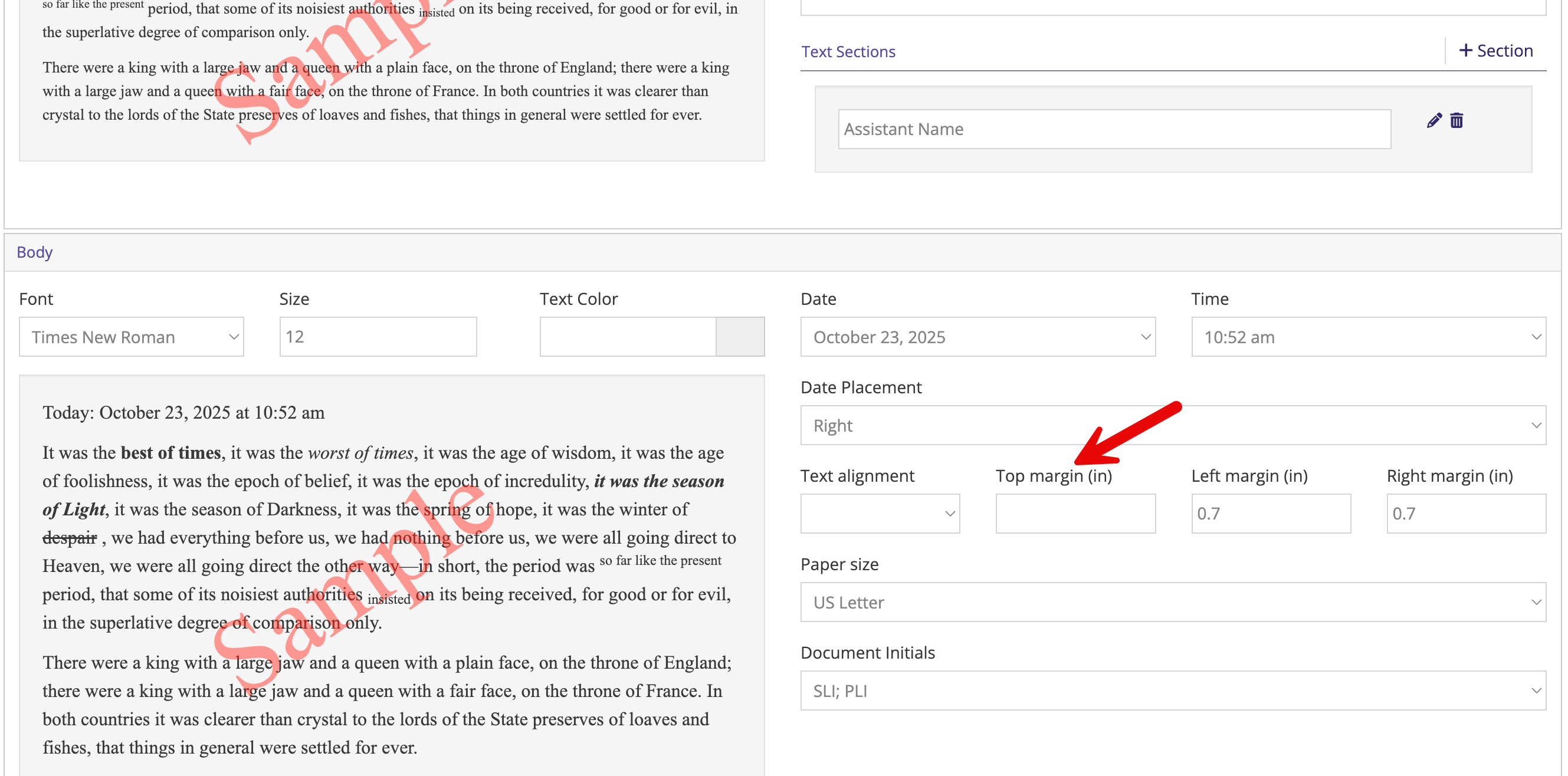 Functionality: The tool separates the first page's top margin setting from the rest of the document body.
